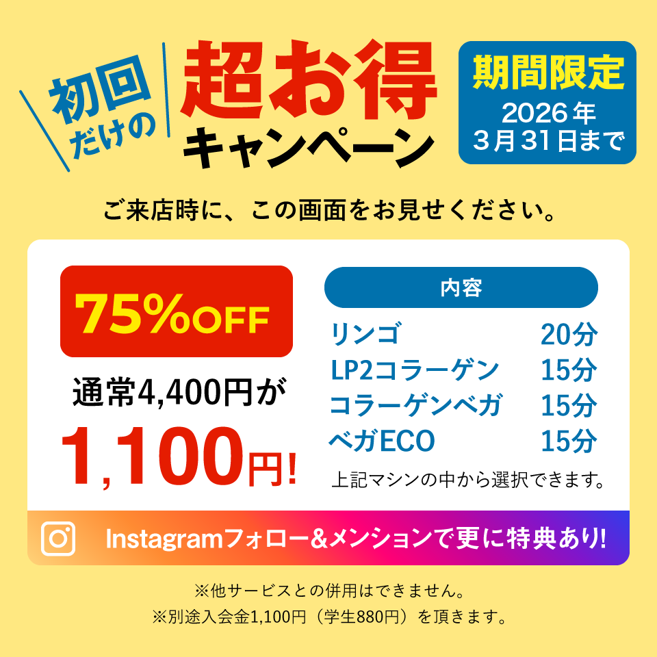 ※ご予約の際はマシンの番号をお伝えください。マシン番号は日焼けレベルの弱い順に並んでいます。
